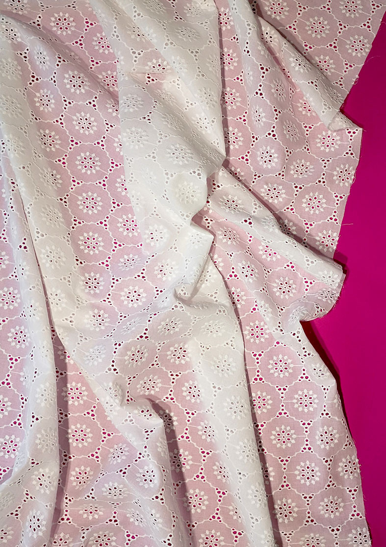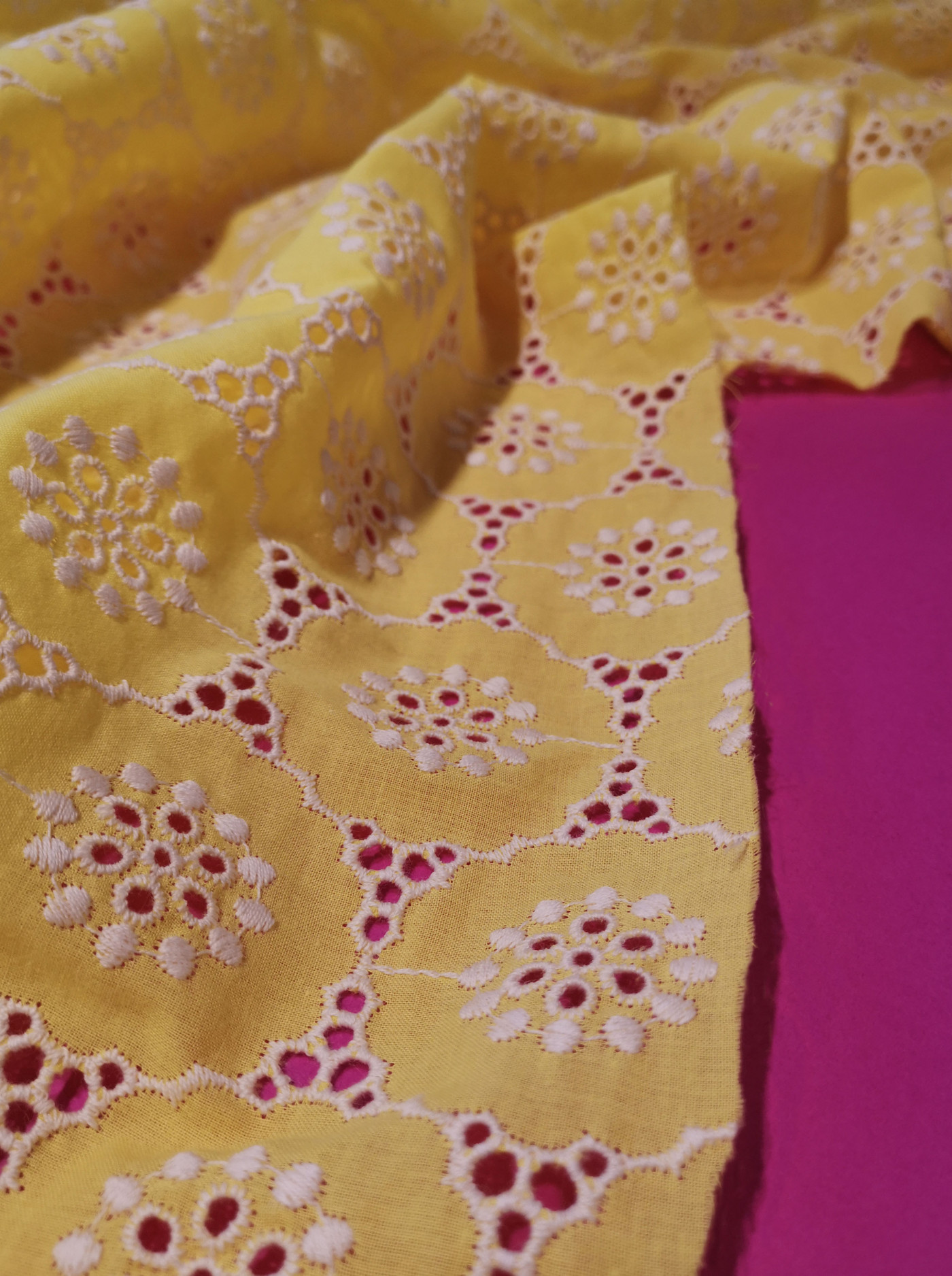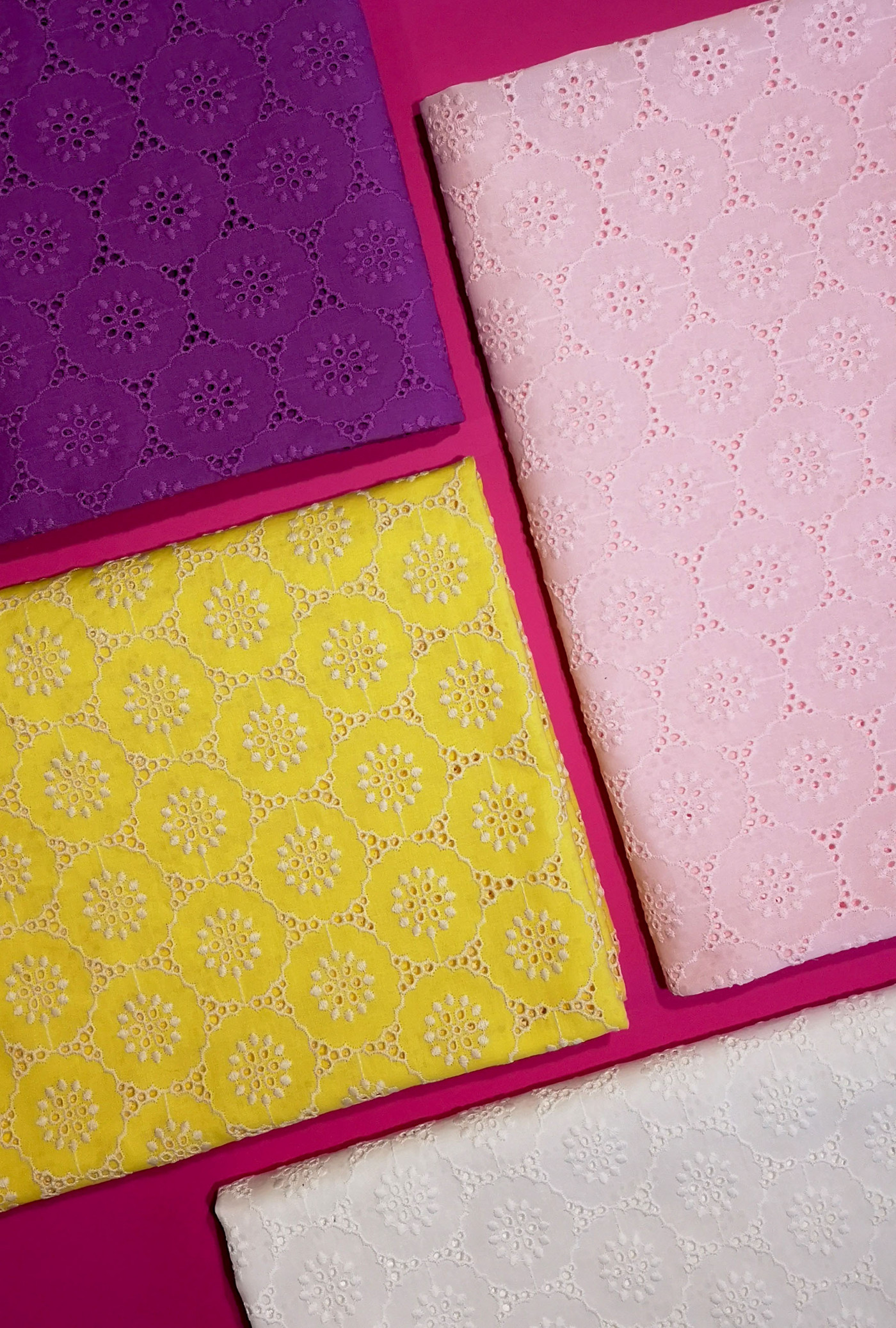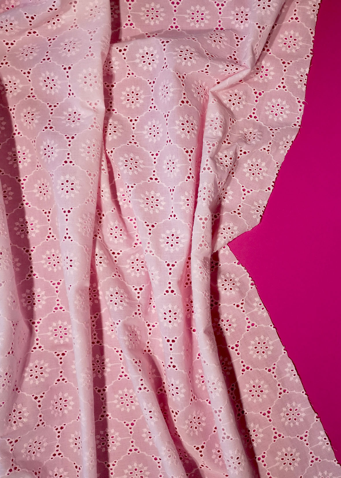 Très belle broderie anglaise ajourée dans un style romantique et bohème dans un jeu de courbes et de ronds . Cette broderie déclinée en 4 coloris vous permettra de confectionner des pièces de hauts et de bas (prévoir une doublure).