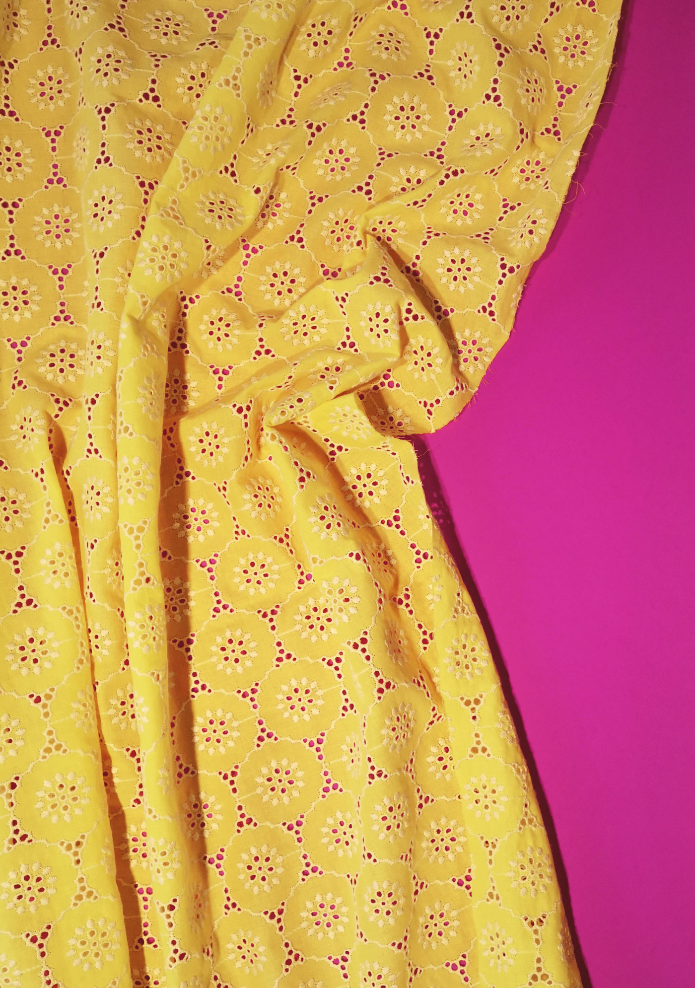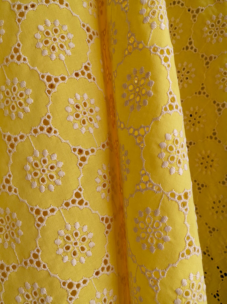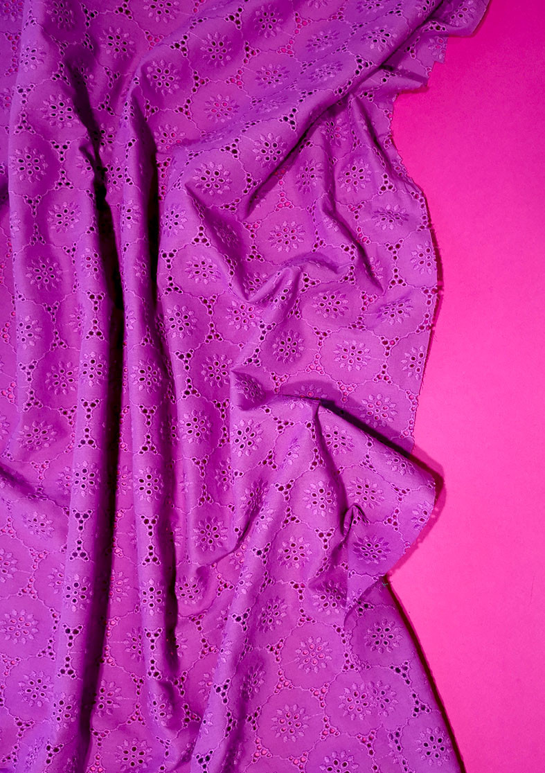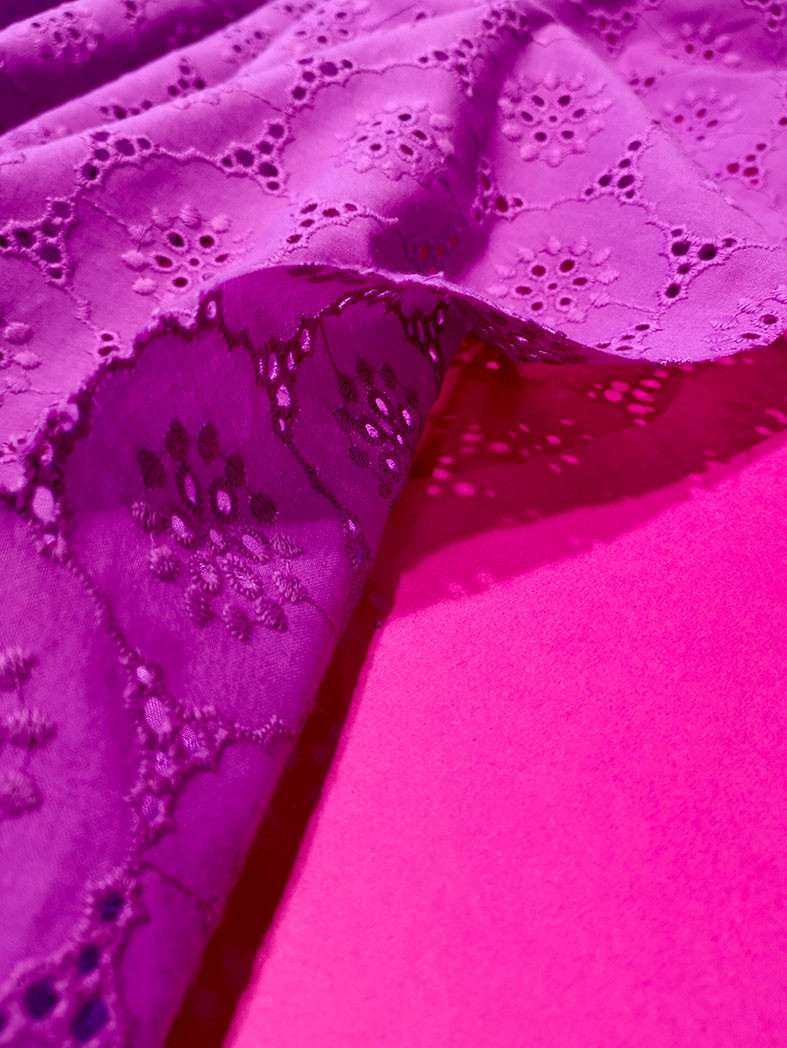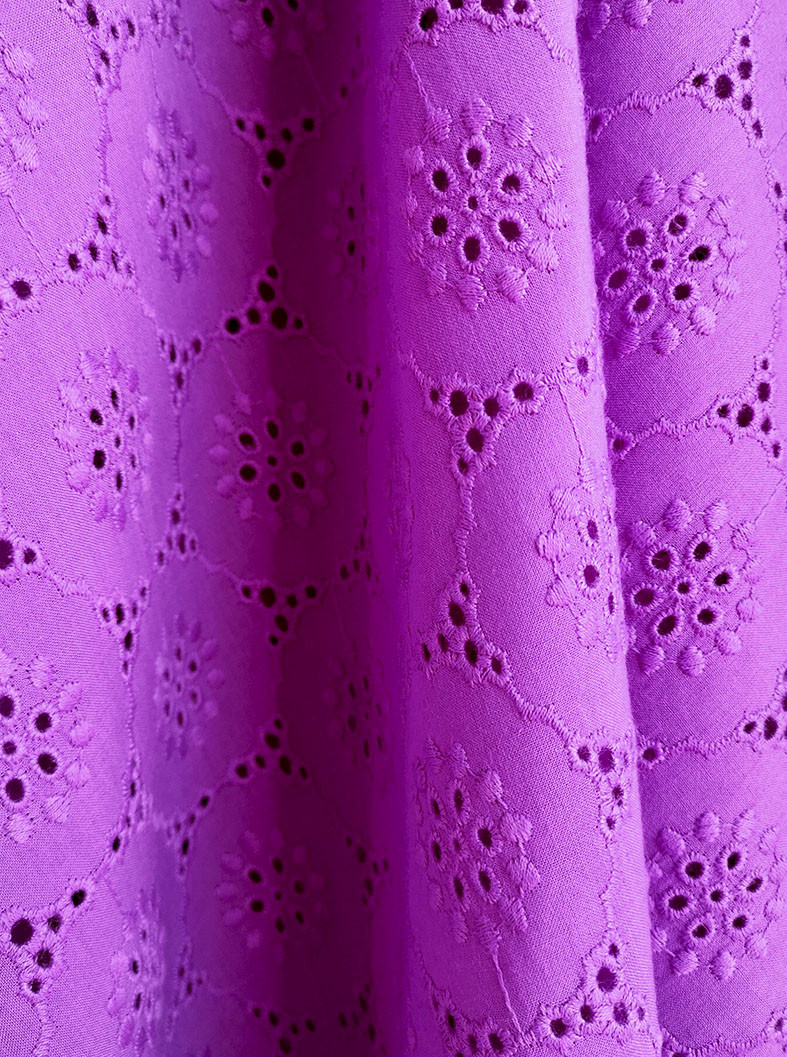 Très belle broderie anglaise ajourée dans un style romantique et bohème dans un jeu de courbes et de ronds . Cette broderie déclinée en 4 coloris vous permettra de confectionner des pièces de hauts et de bas (prévoir une doublure).