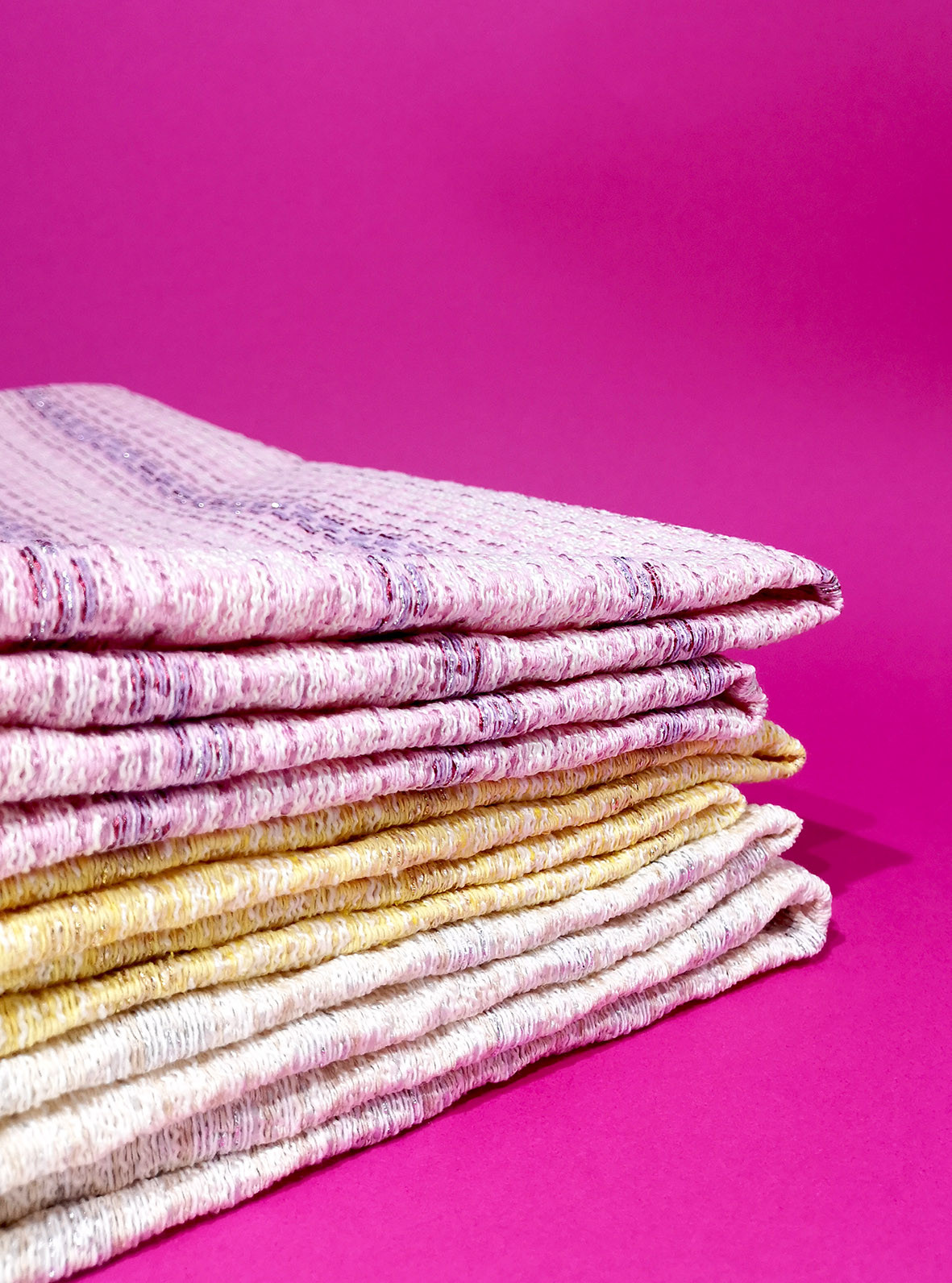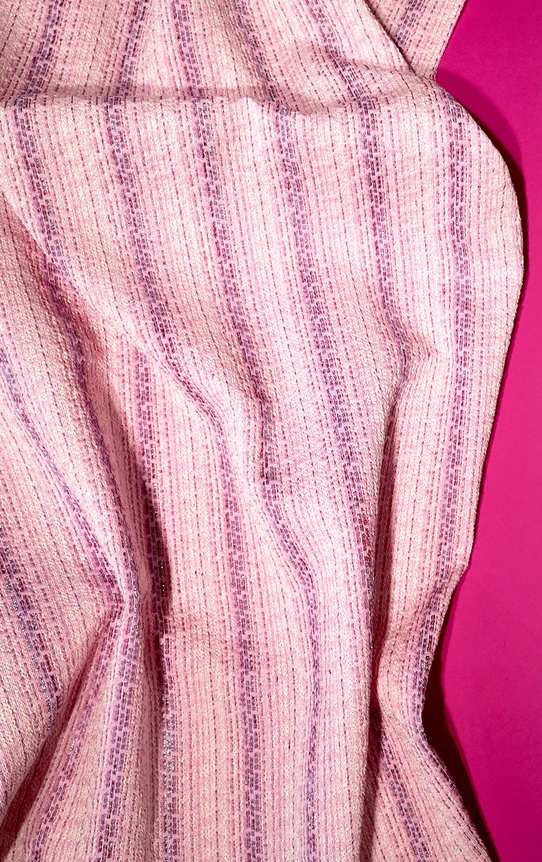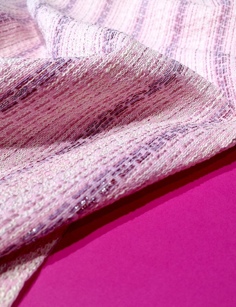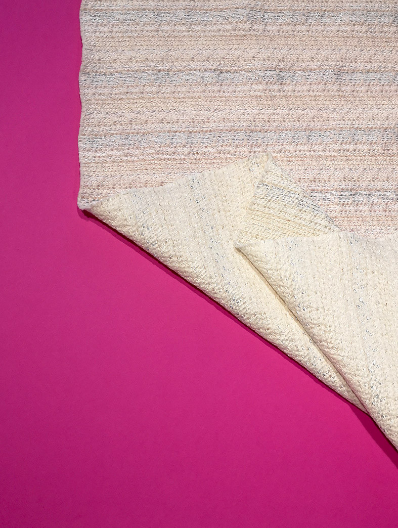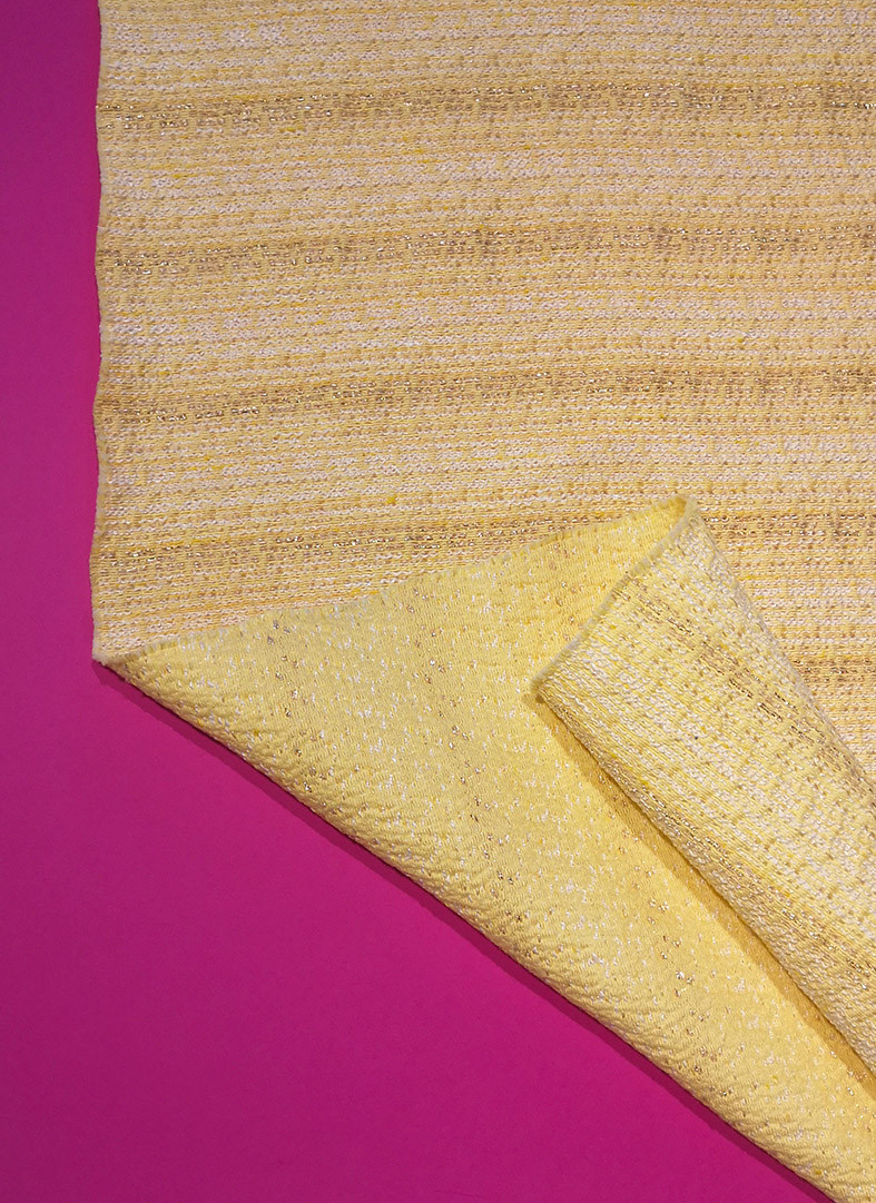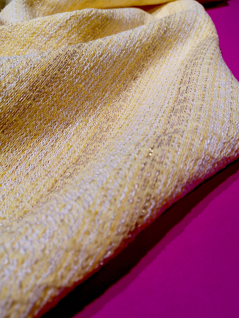 Tissu jacquard texturé avec fil lurex issu de la nouvelle collection Printemps/Eté 2022. Ce jacquard à fils apparents vous permettra de confectionner vos vestes, blazers, ensembles coordonnés…