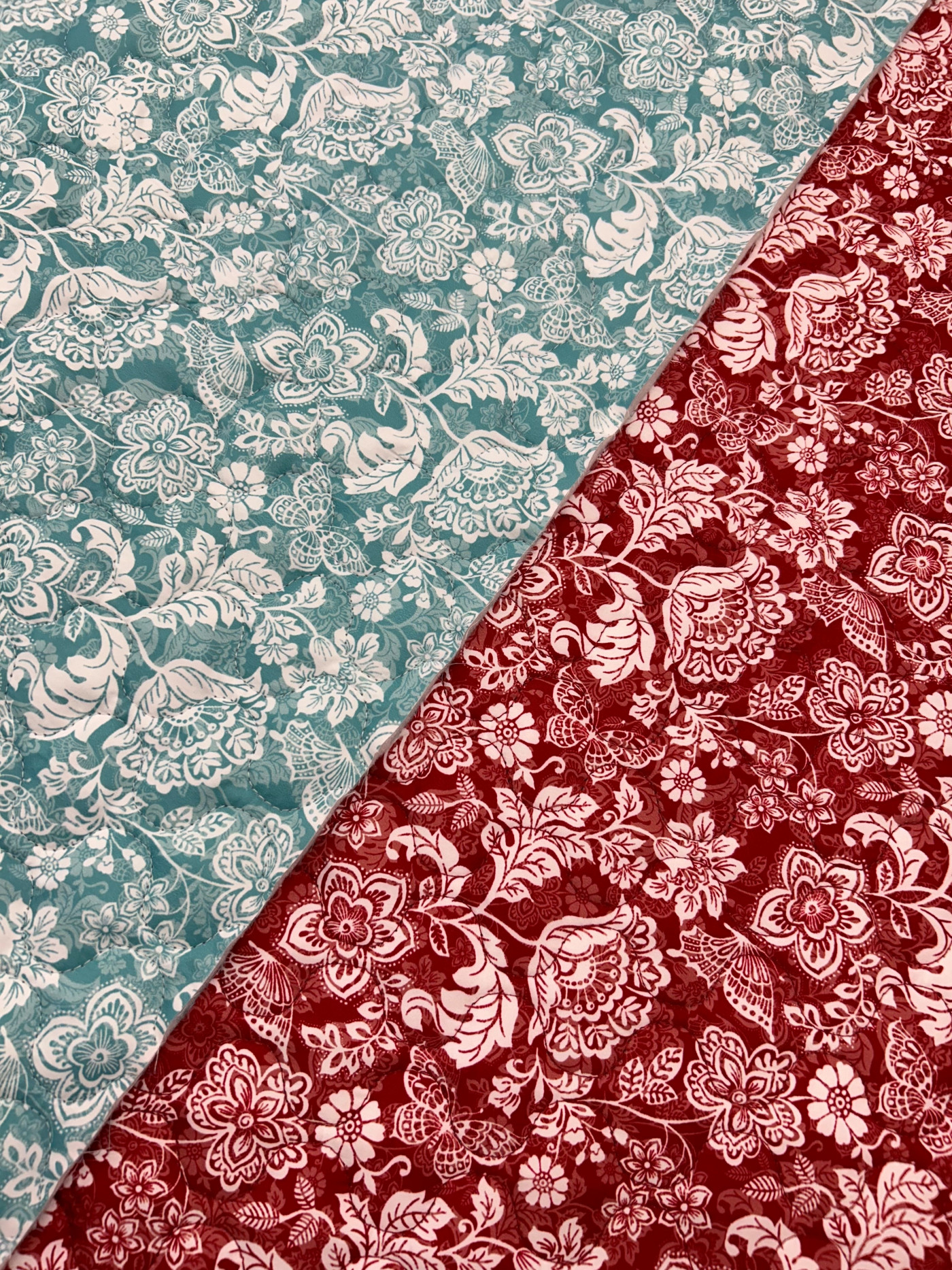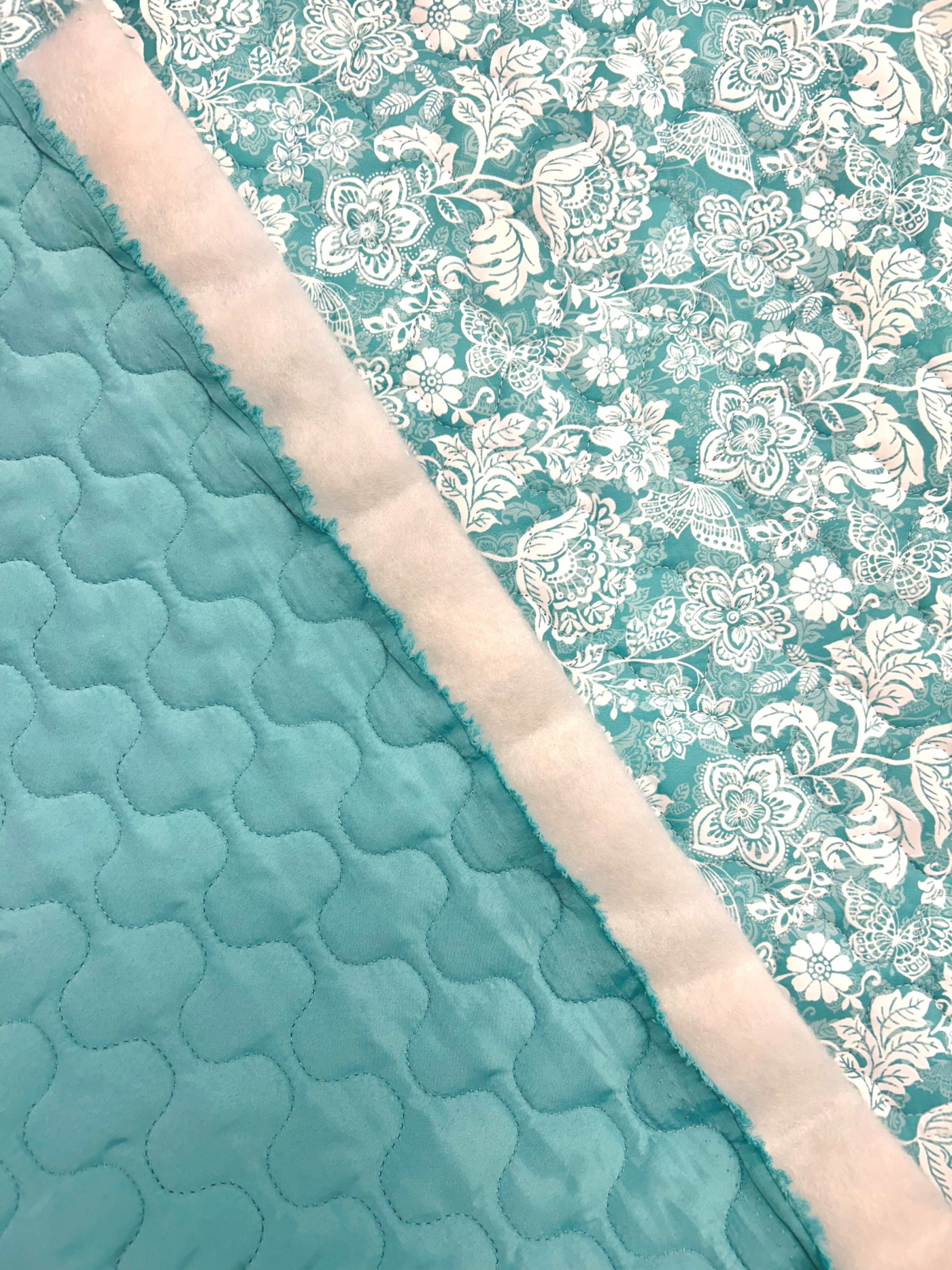 Tissu matelassé 100% polyester décliné en 2 coloris. Ce matelassé réversible présente des surpiqures ondulés de dimensions 4,5 x 4,5cm. Le motif représente un univers floral bucolique avec des fleurs et des papillons. La doublure intérieure est unie. Ce matelassé vous permettra de réaliser des vestes, blousons, gilets sans manches…