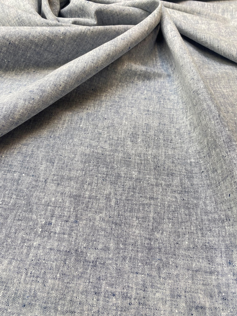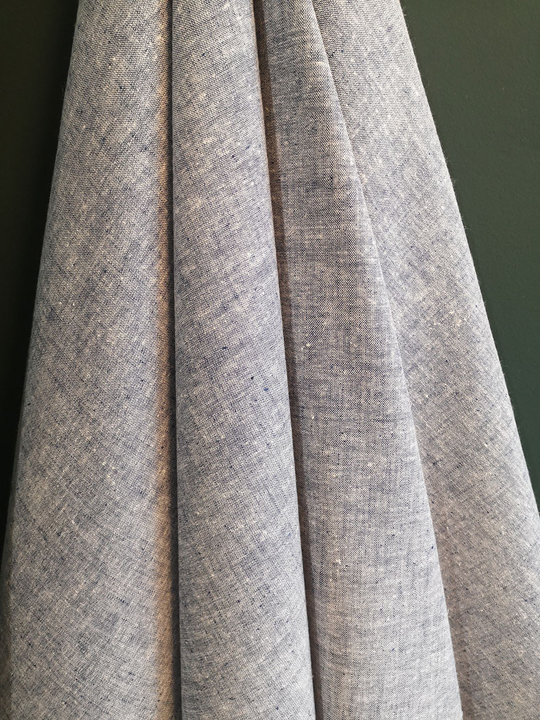 Tissu toile en chanvre et coton organique. Ce tissu souple et doux, coloris Bleu Chiné, conviendra parfaitement pour la confection de chemises, blouses, robes pièces souples