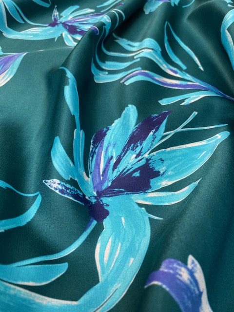 Satin coton/soie imprimé de fleurs dans une très belle ambiance de coloris.