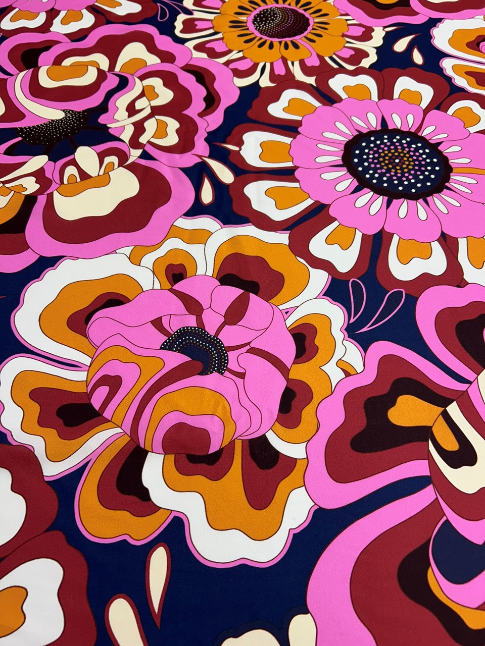 Tissu en coton soie imprimé, léger et fluide. Ce tissu satiné représente un motif floral d’inspiration 70’s. Ce coton soie ambiance vintage conviendra parfaitement pour la confection de pièces fluides, chemisiers, tops, jupes et robes (prévoir éventuellement une doublure)…